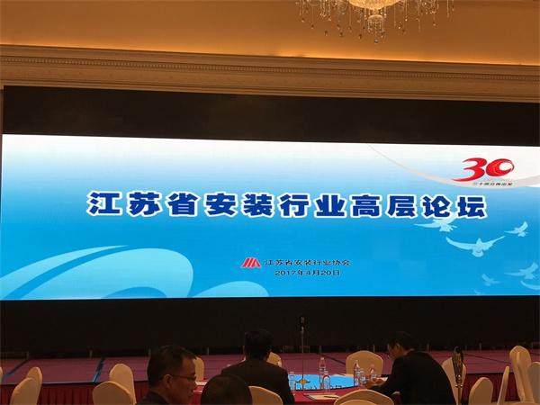2017年4月20日,江蘇省安裝行業2017年工作會議暨30周年表彰慶典活動在宜興召開,集團總經理陳曉、執行董事陳俊樺、副總經理許榮中、行政人事部總經理唐曉云、經營管理部總經理盧娟娟等參加了會議。本次會議還邀請了中國安裝協會、中國設備管理協會、江蘇省住房和城鄉建設廳、相關省、市安裝協會領導等。