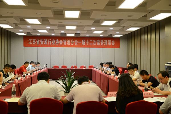 2017年6月2日,江蘇省安裝行業協會智能化與消防工程分會一屆十二次常務理事會在南京祿口國際機場鉑爾曼大酒店召開。參加會議的有中國安裝協會智能化與消防工程分會會長、江蘇省安裝行業協會智能化與消防工程分會會長、江蘇南工科技集團有限公司總經理陳曉;常務副會長吳星紅;副會長陳曦、李旻、劉昌華、徐本裕、楊寒、趙春風;分會常務副秘書長席天陽、副秘書長王建明、祖詠、余晶;專家委名譽主任葉浩生;專家委副主任萬里遠、張榮生、張慶松及常務理事單位代表等40多人。