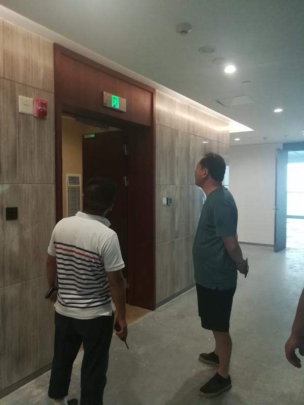 2018年8月12日,陳曉總經理到招商銀行大廈消防工程項目檢查工作,招銀大廈項目負責人周新星、卞東年等陪同了檢查。