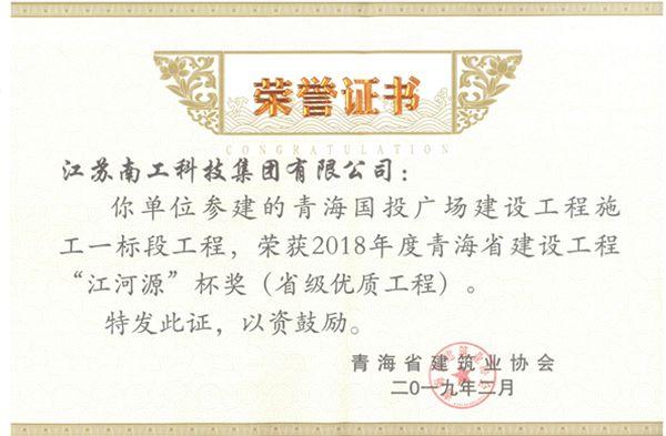 近日,從青海省住建廳傳來喜訊,由我司參建的青海國投廣場建設工程施工一標段工程(智能化與亮化)榮獲2018年度青海省建設工程“江河源”杯獎。