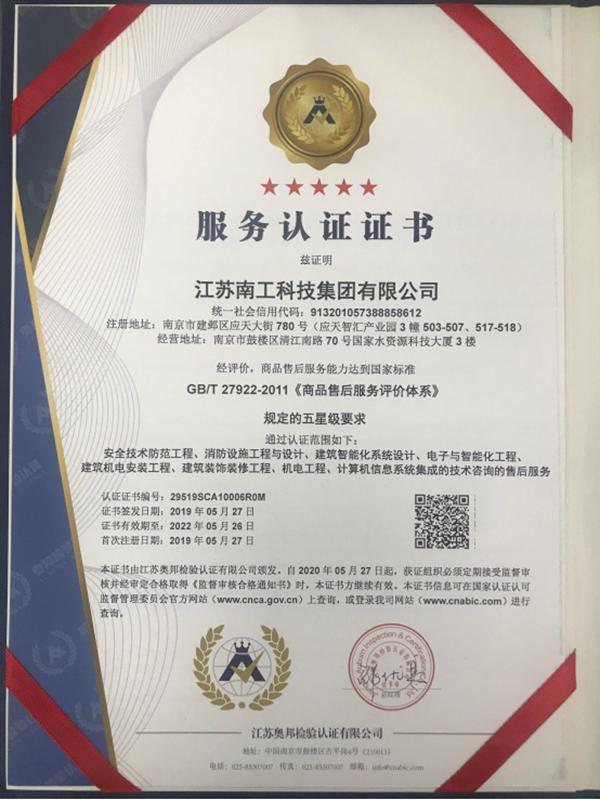 2019年5月27日,集團獲得國家認證認可監督管理委員會頒發的五星級服務認證認可證書。