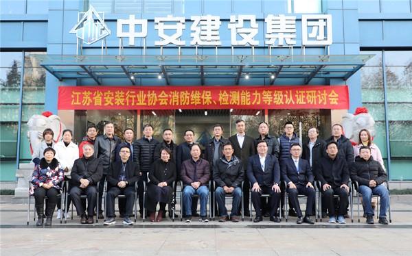 2019年12月19日,江蘇省安裝行業消防技術服務機構能力評價辦法研討會在中安建設安裝集團有限公司召開。參加會議的有江蘇省安裝行業協會副會長、智能化與消防工程分會會長陳曉,會長助理顧建生,秘書長吳輝,監事祖詠,副秘書長席天陽,質量部主任陳華。智能化與消防工程分會顧問葉浩生,副會長范浩松、顧永松、蔡明,副秘書長余晶、季克亮、陳霞,專家委員會副主任萬理遠及相關消防企業總經理、總工程師等30多人。