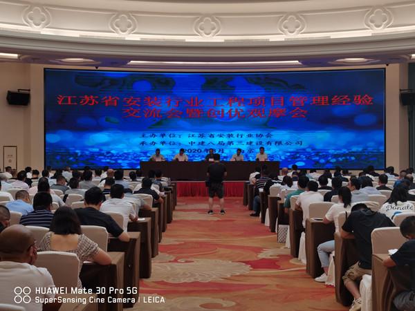 2020年8月25日,江蘇省安裝行業工程管理經驗交流會暨創優觀摩會在中建八局第三建設有限公司召開。參加會議的有江蘇省安裝行業協會駐會副會長鄒金林、會長助理顧建生;中建八局第三建設有限公司總經理張述堅、安裝公司總經理梁勇;中電萊斯信息系統有限公司基本建設管理處黨支部書記滕惠根;集團常務副總經理夏鳴、副總經理兼技術部經理張偉等500多人參加了會議。