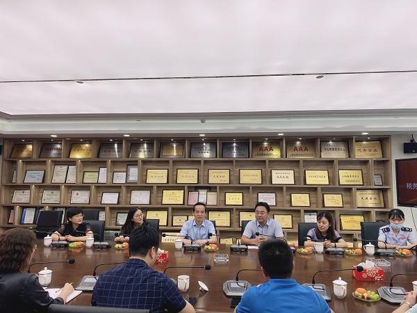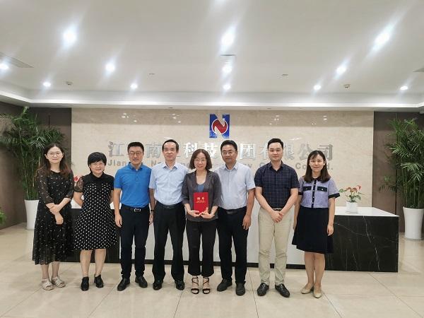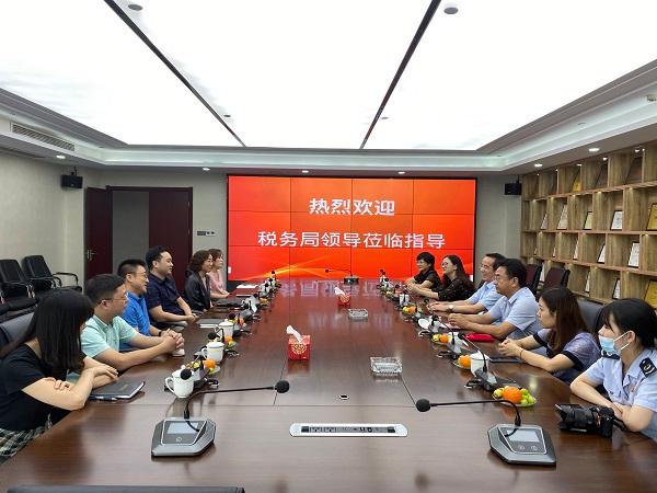 2020年9月2日,南京市稅務局宗明副處長、唐恬副主任;建鄴稅務局賈振祥副局長、曾睿科長、葉桂玲科長、張薇主任到集團考察指導工作,并為集團副經理兼財務總監劉湘寧頒發《南京市營商環境特約監督員》聘書。集團常務副總經理夏鳴、執行董事陳俊樺、副總經理兼財務總監劉湘寧、財務部副經理張城及胡東林等人參加了考察。