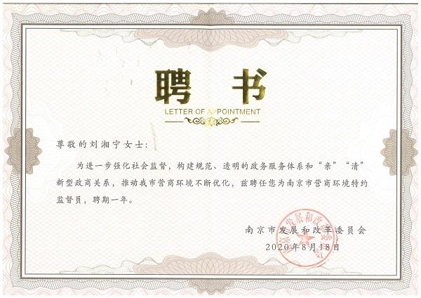 宗明副處長代表南京市稅務局為劉湘寧副總經理頒發了《南京市營商環境特約監督員》聘書,宗明副處長、賈振祥副局長分別作了講話,希望劉湘寧同志在擔任南京市營商環境特約監督員期間,擔負好政企聯絡、政策宣傳及政府監督職責工作,為進一步構建規范、透明的政務服務體系和“親”“清”新型政商關系,強化社會監督,推動我市營商環境不斷優化做出努力和貢獻。