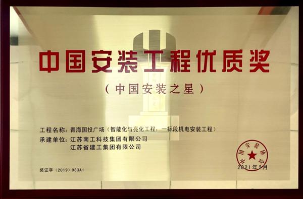沙海副會長宣讀“關于表彰2019-2020年度中國安裝工程優質獎(中國安裝之星)獲獎單位的決定”。南工集團承建的“青海國投廣場智能化與亮化工程”項目榮獲中國安裝工程質量最高獎“中國安裝之星”。