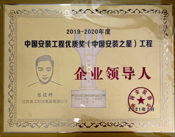 集團執行董事陳俊樺榮獲2019-2020年度中國安裝工程優質獎(中國安裝之星)工程企業領導人特別榮譽證書,集團宋慧榮獲2019-2020年度中國安裝工程優質獎(中國安裝之星)工程項目經理特別榮譽證書。