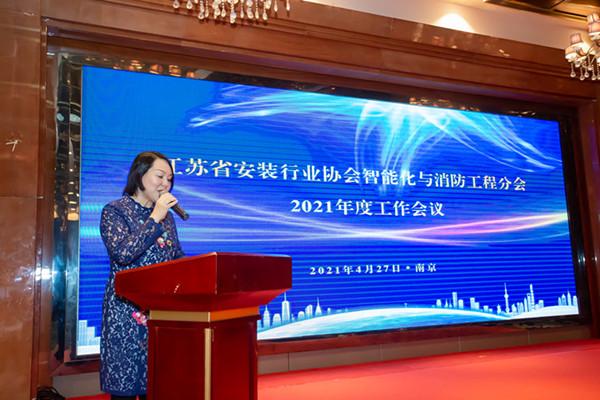 2021年4月27日,江蘇省安裝行業協會智能化與消防工程分會2021年度年會在南京召開。參加會議的有江蘇省安裝行業協會駐會副會長鄒金林,會長助理顧建生,副會長、智能化與消防工程分會分會會長陳曉,秘書長吳輝,監事、副秘書長祖詠,副秘書長席天陽。南京安全技術防范行業協會秘書長張亞忠,江蘇省自動化學會智慧城市&建筑智能化專業委員會主任何建國,江蘇省土木建筑學會智能建筑與智慧城市專業委員會主任臧勝,江蘇省勘察設計行業協會智能建筑工作委員會會長管清寶。分會常務副會長吳星紅,副會長劉昌華、陳俊樺、顧永松、周蓉蓉、徐本裕、肖忠海、蔡明、袁媛、唐世威、吳天威、任霞芬、鄧銀波,分會顧問葉浩生,分會副秘書長兼專家委員會主任王建明,副秘書長陳霞、李英,分會專家委員會副主任張慶松及專家、會員企業代表等200多人。江蘇南工科技集團有限公司常務副總經理夏鳴、副總經理吳雪峰參加了會議。