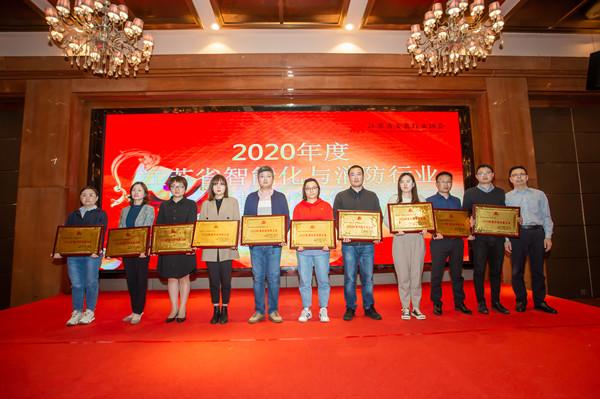 鄒金林駐會副會長作了重要講話,鄒金林、吳輝向榮獲2020年度江蘇省智能化與消防工程科技創新企業頒發了證書、獎牌。
