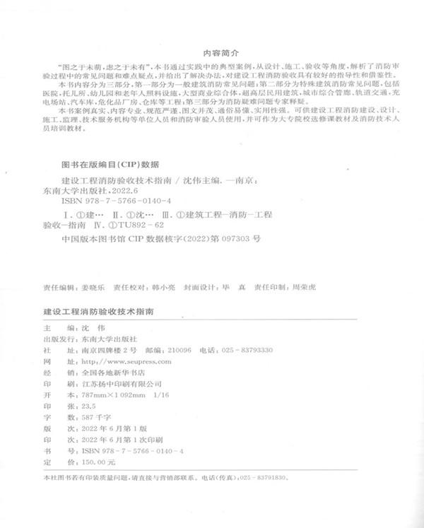2022年6月30日,由南京市建設工程消防審驗服務中心為主編單位,沈偉主任擔任主編的《建設工程消防驗收技術指南》由東南大學出版社出版發行。