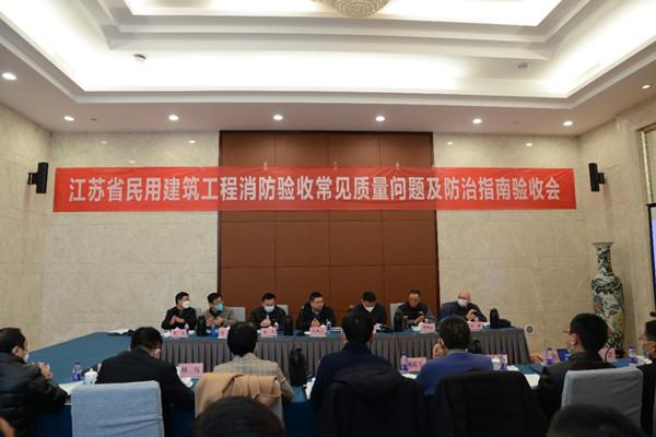 2023年1月6日,江蘇省住房和城鄉建設廳召開《江蘇省民用建筑工程消防驗收常見問題解析及防治指南》驗收會。廳消防處處長戴登軍、質安處副處長陸湛秋、消防處一級主任科員周偉,南京市建設工程消防審驗服務中心主任沈偉、驗收一科科長鮑忠誠、副科長孔文憭,江蘇省安裝行業協會會長助理顧建生、副會長陳曉、副秘書長席天陽、質量部主任陳華以及來自質量監督、消防驗收、消防救援、設計、監理、施工、檢測等行業的業內知名專家及課題組主要成員參加了會議。江蘇南工科技集團有限公司副總工程師宋慧參加了會議。