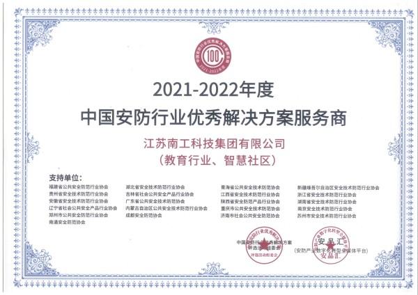 江蘇南工科技集團有限公司憑借殷實的企業實力、過硬的產品及解決方案榮獲“第六屆中國安防百強工程(集成)商”和“2021-2022年度中國安防行業優秀解決方案服務商”榮譽稱號。集團執行董事陳俊樺被提名為“第五屆中國安防年度人物”。