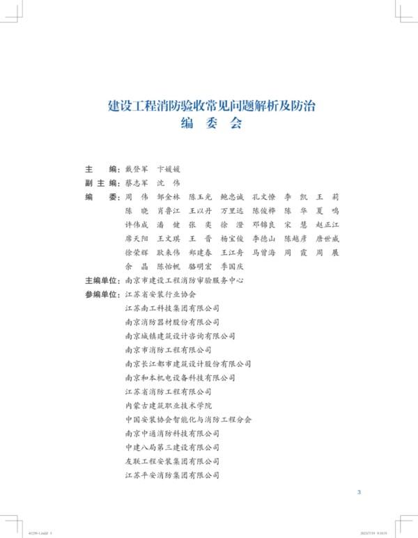 2023年7月31日,由江蘇省住房和城鄉建設廳建設工程消防管理處、南京市建設工程消防審驗服務中心主編的《建設工程消防驗收常見問題解析及防治》正式出版發行。江蘇南工科技集團有限公司是主要參編單位。