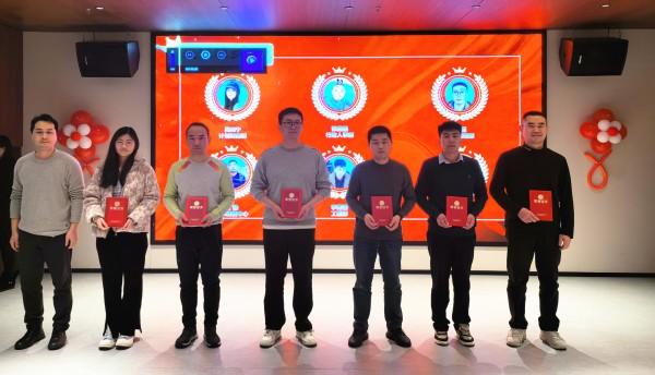 集團表彰了2023年度先進個人、最佳進步、先進集體等。希望全體員工學習先進,以先進為標桿,凝心聚力,攜手并進,為2024年的發展再創佳績。董事長英方,總經理陳曉,常務副總經理夏鳴,執行董事陳俊樺,副總經理吳雪峰、許榮中、劉湘寧、張偉、盧娟娟、迮小勇及各公司、部門、區域公司領導和全體員工等參加了會議及迎新晚宴。
