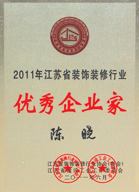 江蘇省裝飾裝修行業優秀企業家(陳曉)
