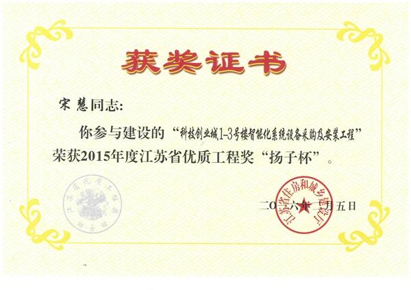 智能化工程“揚子杯”證書(宋慧)
