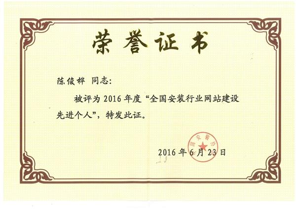 全國安裝行業網站建設優秀個人(陳俊樺)