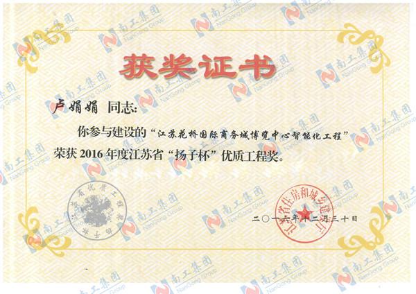智能化工程“揚子杯”證書(盧娟娟)