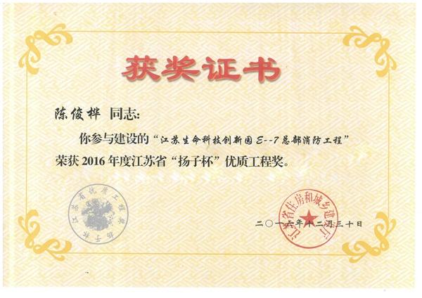 消防工程“揚子杯”證書(陳俊樺)