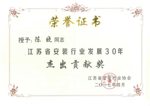 江蘇省安裝行業發展30年杰出貢獻獎(陳曉)