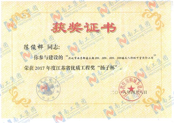 您的位置:集團首頁 >> 走進南工 >> 企業榮譽 >> 個人榮譽 >> 揚子杯興化西子御園-陳俊樺
