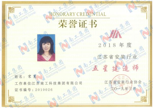 您的位置:集團首頁 >> 走進南工 >> 企業榮譽 >> 個人榮譽 >> 2018年度江蘇安裝行業星級建造師-宋慧