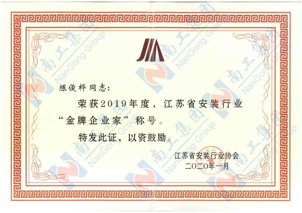 2019年度江蘇省安裝行業“金牌企業家”—陳俊樺