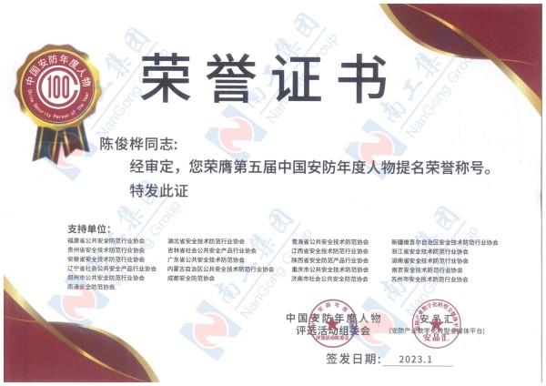 第五屆中國安防年度人物提名榮譽-陳俊樺