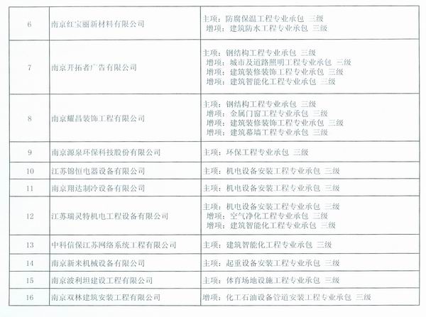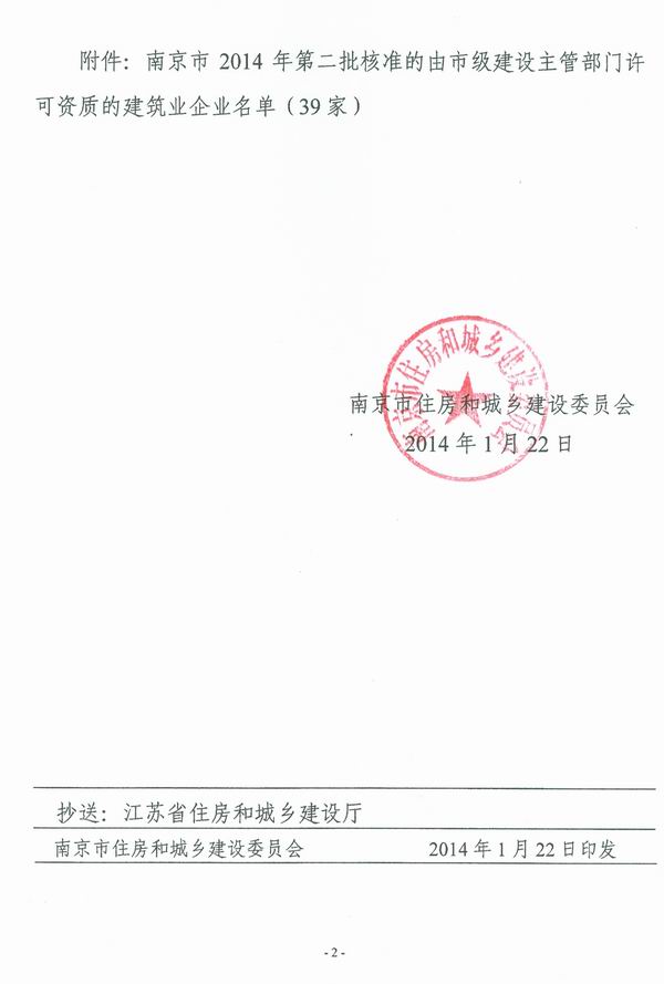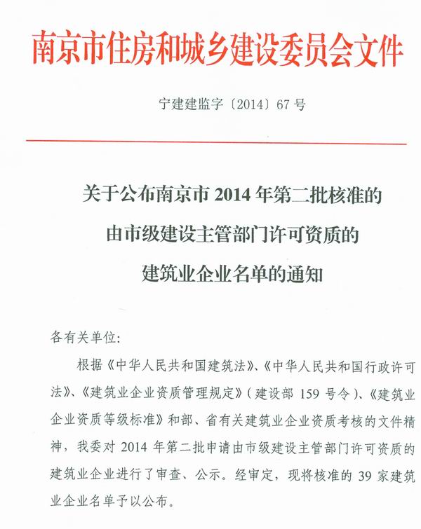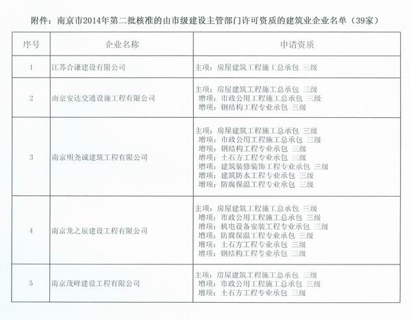 關于公布南京市2014年第二批核準的由市級建設主管部門許可資質的建筑業企業名單的通知