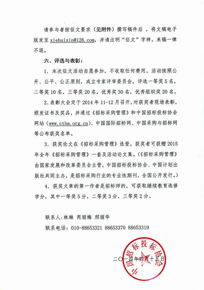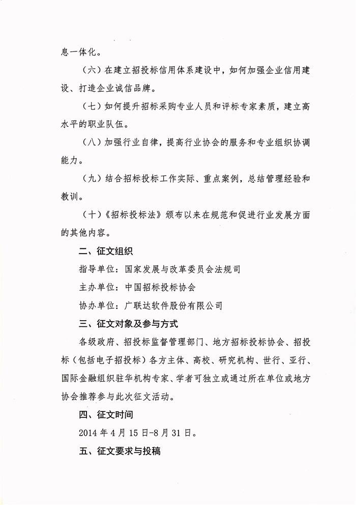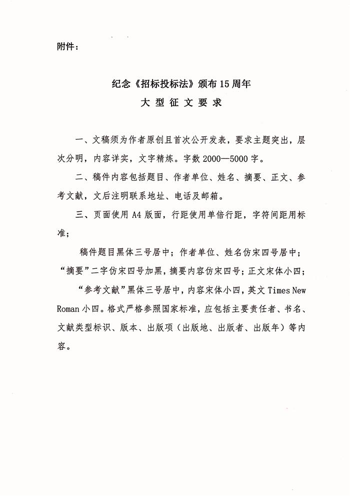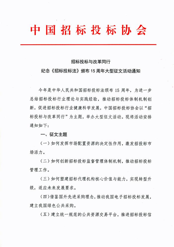 招標投標與改革同行——紀念《招標投標法》頒布15周年大型征文活動通知