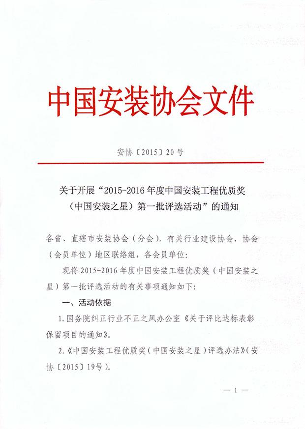 下載附件:2015-2016年中國安裝工程優質獎(中國安裝之星)第一批申報工程信息表