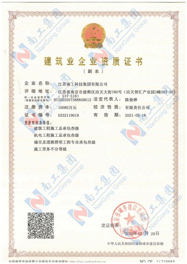 您的位置:集團首頁 >> 走進南工 >> 企業資質 >> 建筑工程施工總承包叁級、機電工程施工總承包三級、城市及道路...