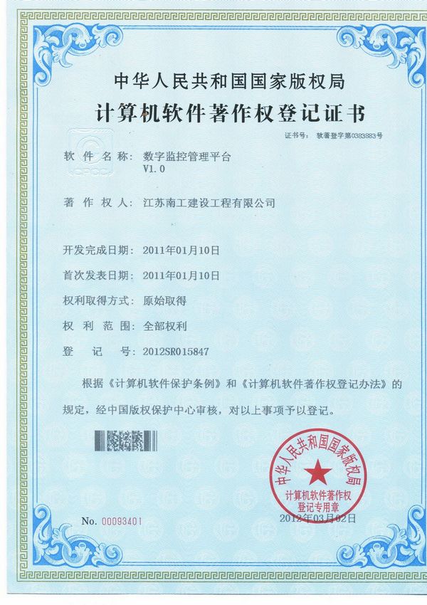 數字監控管理平臺證書