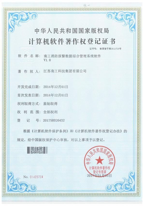 南工消防報警數據綜合管理系統軟件證書