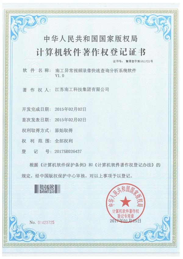 南工異常視頻錄像快速查詢分析系統軟件證書