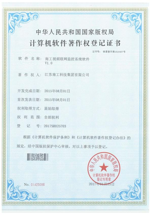 您的位置:集團首頁 >> 科技創新 >> 軟件產品 >> 南工視頻聯網監控系統軟件證書