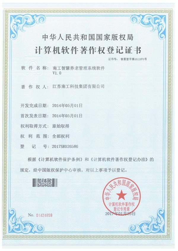 南工智慧養老管理系統軟件證書